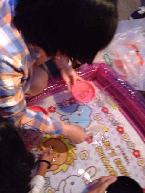 で、子供2人は見事に金魚すくいの持つ奴(ポイというそうです)の紙は破れましたが(私が破れたポイのハジにウパちゃんを乗せて2匹確保!)、2人で2匹を持ち帰ることに。