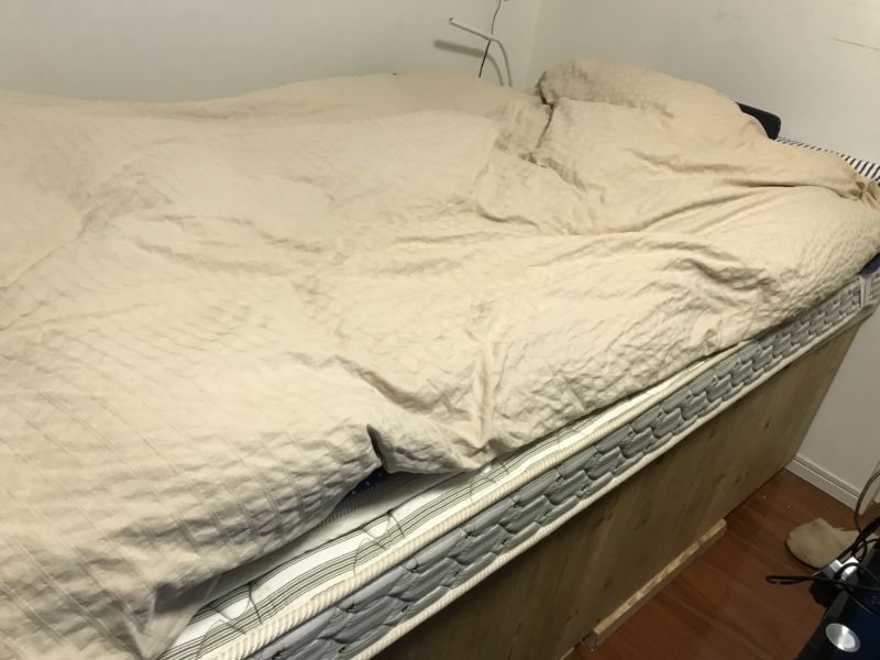 まあ、既製品を買うよりは手作り感満載、かもですが、今のところ壊れずに寝れて、かつ荷物の収納力も抜群なので個人的には満足しています!