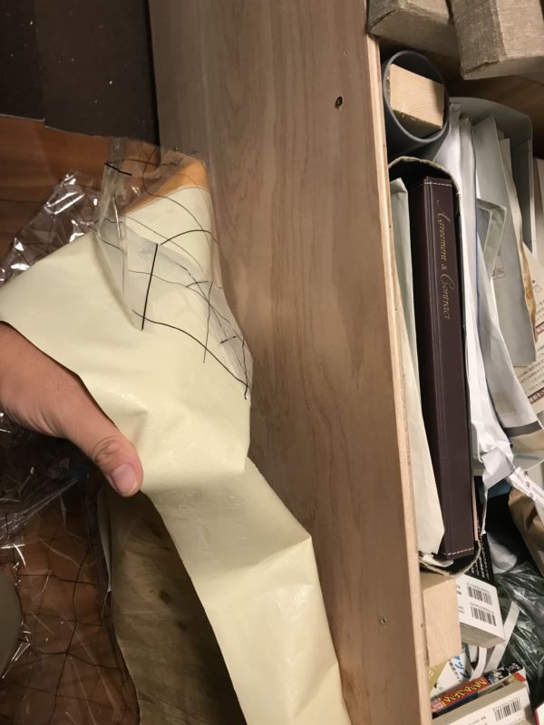 変形部分がこうなります。コンパネだけど、サンドペーパーをかけると結構いい風合い。